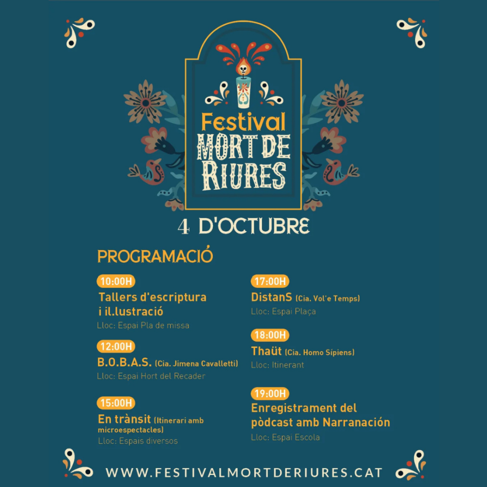 El Festival Mort de Riures aposta per una experiència escènica immersiva i de gran qualitat, aprofitant els racons i espais emblemàtics de Copons com a escenaris inesperats. La implicació entusiasta del teixit associatiu local -les entitats culturals, l’escola, els joves i el veïnat- converteixen aquest festival en un projecte comunitari, arrelat al territori i ple d’energia creativa. Copons us espera amb els braços oberts… i un somriure ben viu davant la mort!